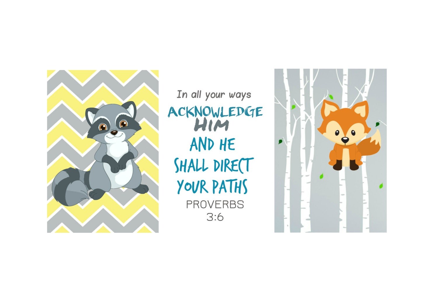 WOODLAND Baby bible verse Art Animal Prints Raccoon Fox Boys