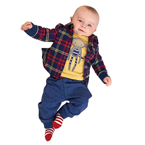 2pcs Cotton Newborn Baby Infant Boy Clothes Sets T-shirt Top+Plaid Pants Outfits eBay