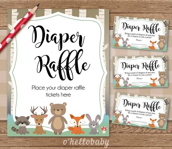 Diaper Raffle Baby Shower Game Woodland Animals Baby Boy