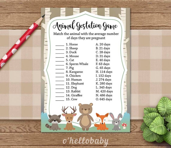 Animal Gestation Baby Shower Game Woodland Animals by ohellobaby